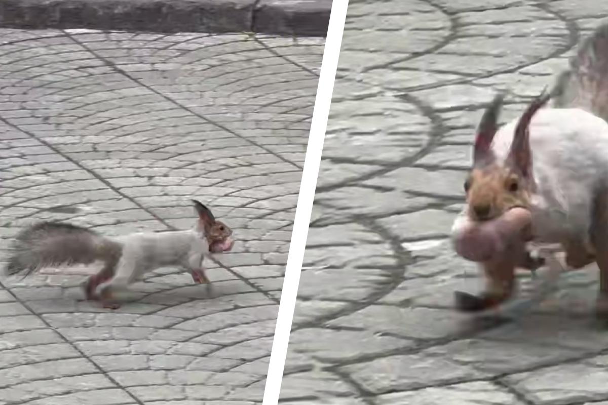 Самка белки перенесла шестерых детёнышей возрастом около двух недель. Редкие кадры опубликовал зоопарк.