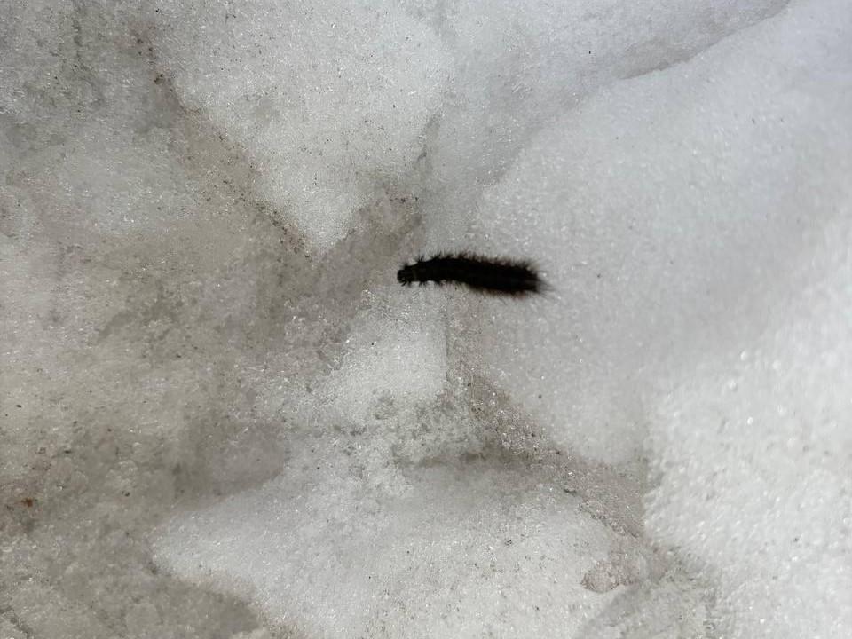 Мохнатая гусеница была сфотографирована на снегу в Новосибирске.
