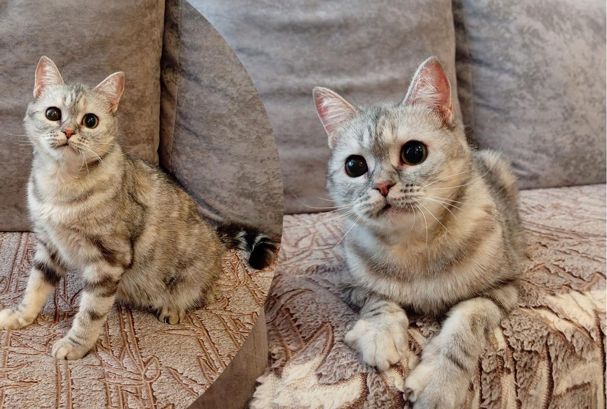 Сейчас Бусинке примерно три-четыре года. Аллергия, имеющаяся у кошки, не снижает ее активности. Питомица прошла тесты на скрытые инфекции, включая лейкоз и иммунодефицит, результаты оказались отрицательными. Бусинка стерилизована, обработана от паразитов и приучена к лотку.