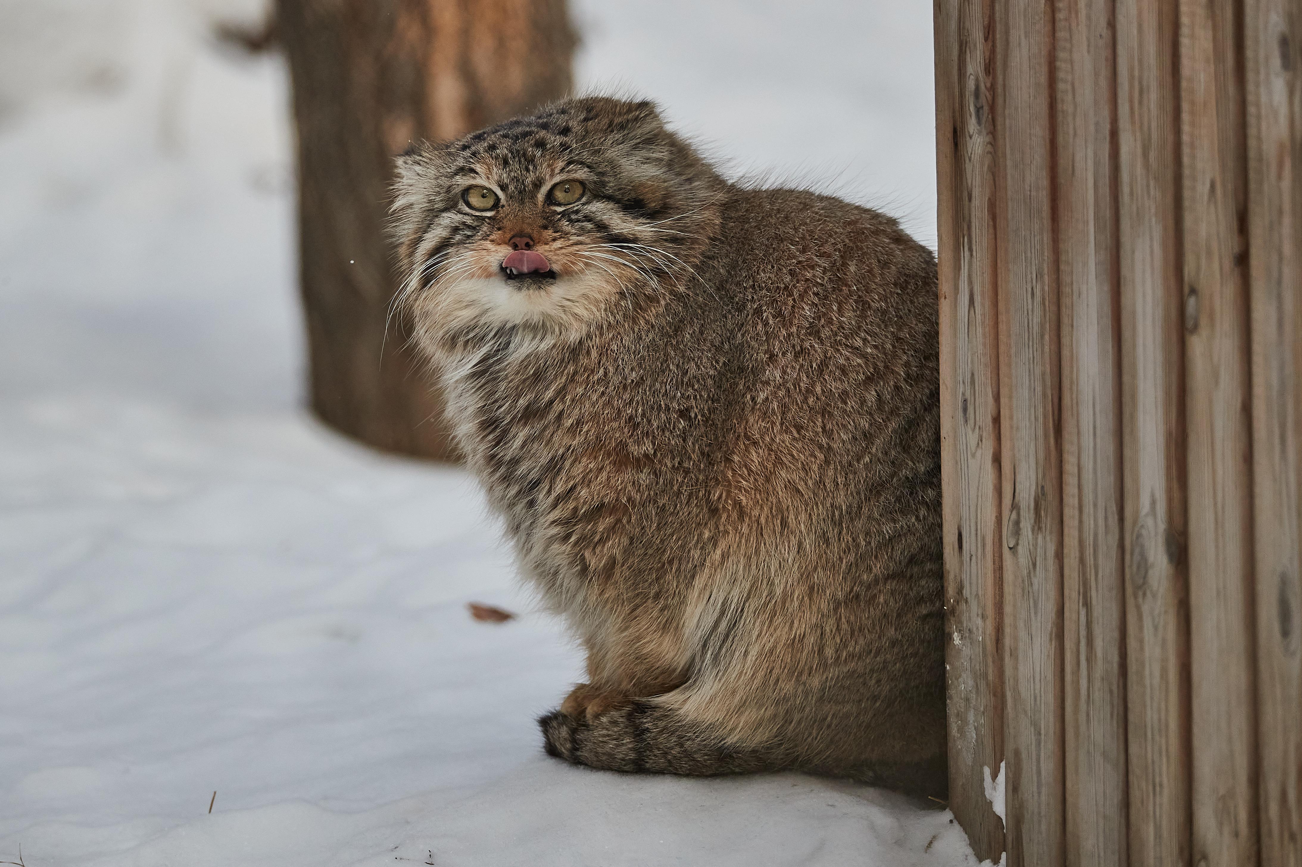 В Новосибирском зоопарке манулы встретили праздники в полной готовности к предстоящим морозам. Один из этих диких котов наглядно показал свой способ защиты конечностей от низких температур.