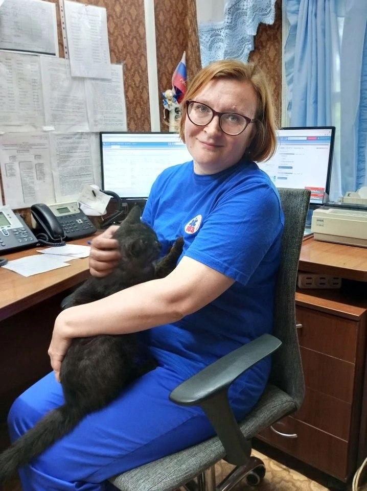 «У нас есть уборщица служебных помещений — это его большая любовь. Она на работу приходит, а он — за ней. Ночью «работает» в диспетчерской с девчонками — успокаивает нервы. Доктора возвращаются с вызовов уставшими, пообщаются с котом — и становится легче. Он мяукает, просит внимания, очень разговорчивый товарищ», — заключила Екатерина Христенко.