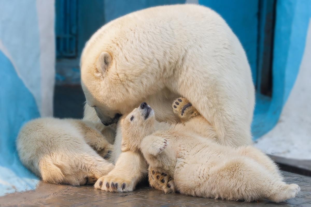 Белая медведица Герда из Новосибирского зоопарка в пятый раз принесла потомство. Первый её медвежонок родился ещё в 2013 году.