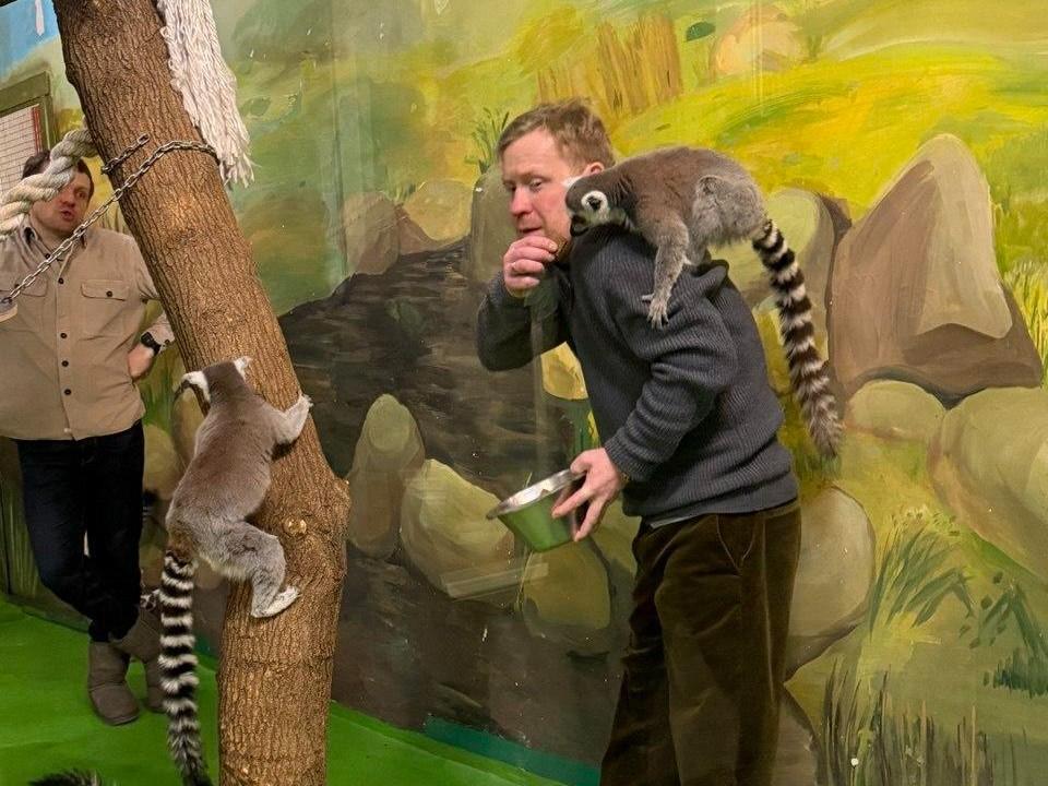 Антон Богданов общается с животными во время визита в Новосибирский зоопарк