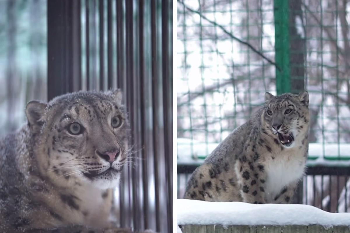 Самка снежного барса по кличке Серебряна впервые появилась перед посетителями Новосибирского зоопарка. Её выход запечатлели на видео.