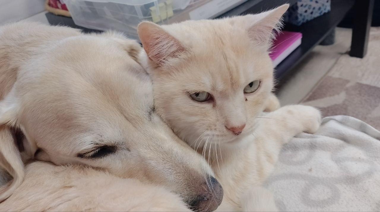 Дружба кота и собаки возможна, хотя один из них не в восторге от объятий