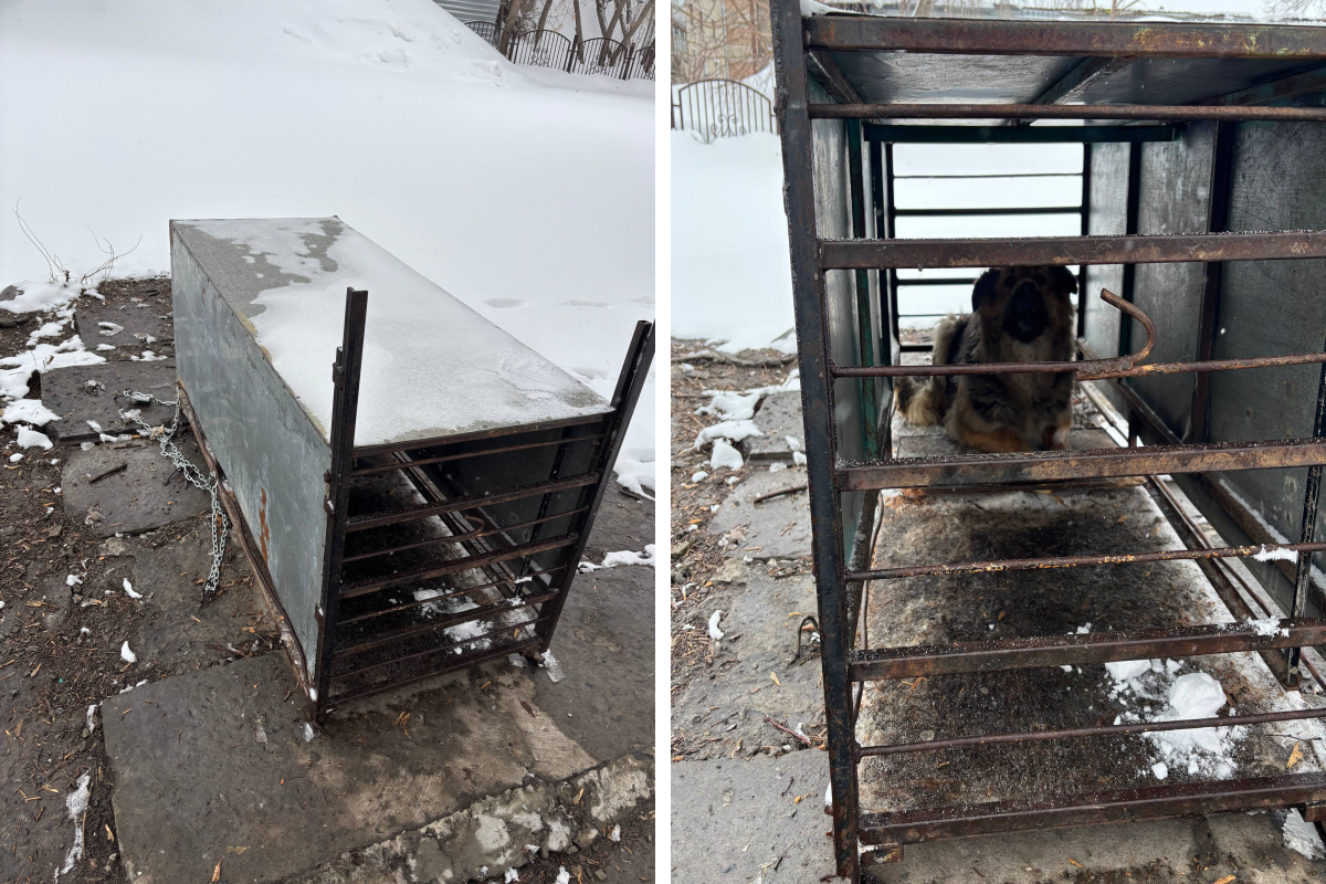 Возле гимназии №11 «Гармония» на улице Федосеева в Новосибирске появилась ловушка для бездомных собак. По словам местной жительницы, конструкция очень тяжёлая и надёжно заварена.