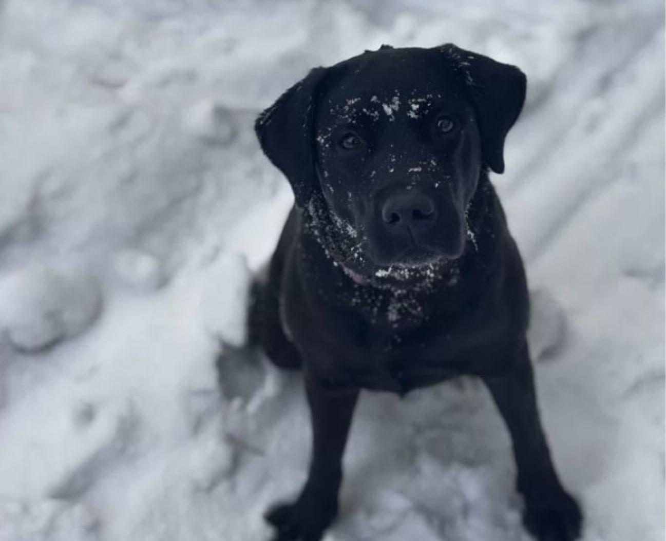 Лабрадор Альма обладает густой шерстью насыщенного черного цвета.