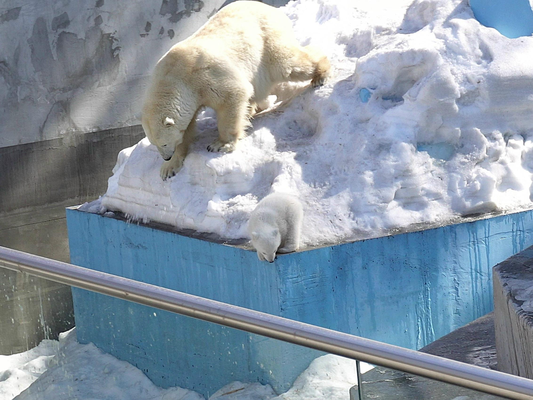 Полюбоваться на детёныша белой медведицы посетители могут только издалека.