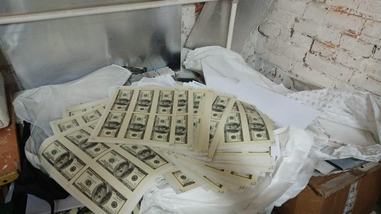 - При обысках на подпольном производстве были изъяты тысячи готовых купюр, листы с отпечатанными заготовками и специализированное типографское оборудование.