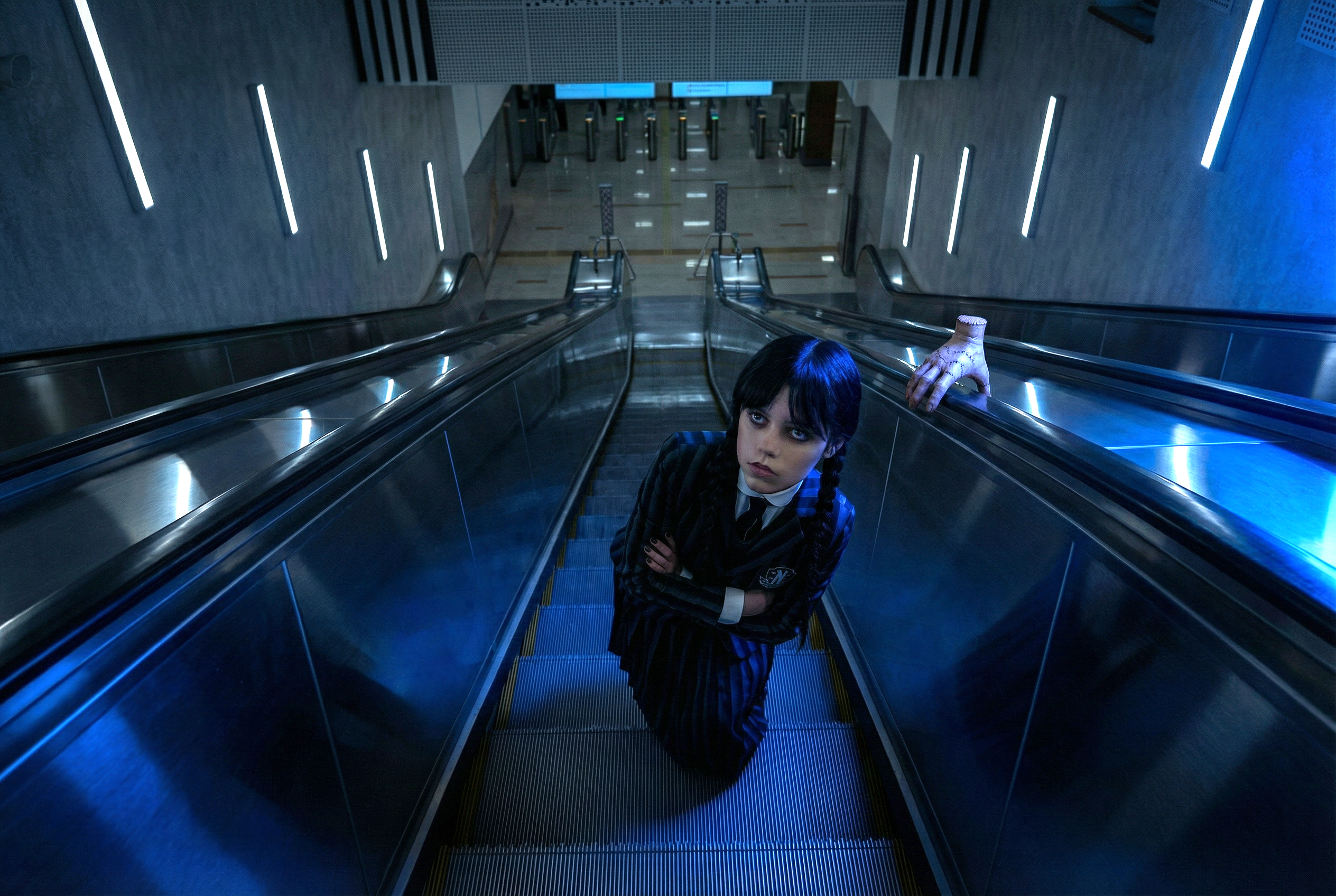 Уэнсдей Аддамс прокатилась до станции метро «Спортивная», открытие которой ждали очень долго и теперь с гордостью демонстрируют.