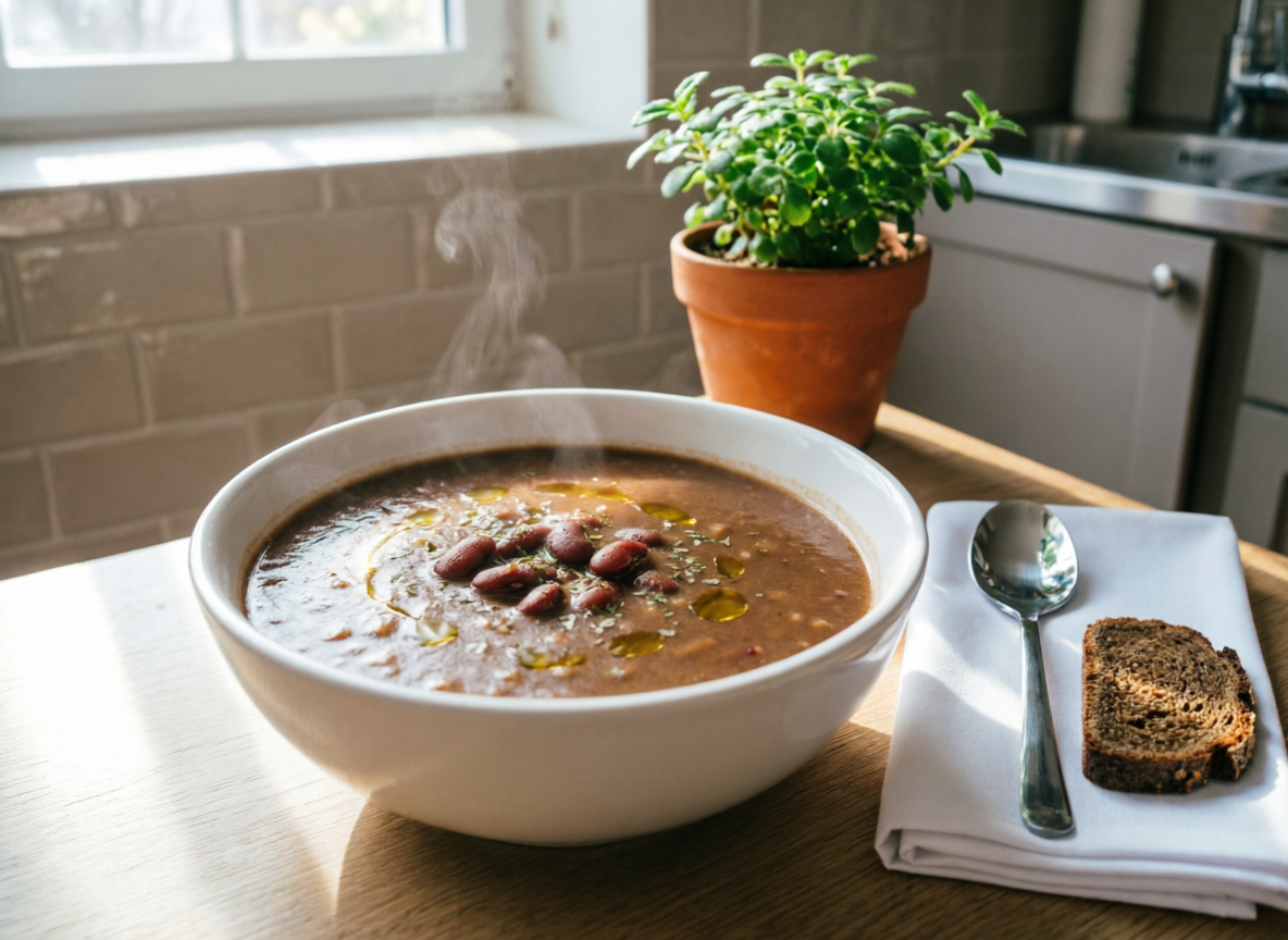 Фасолевый суп — универсальное блюдо, идеальное для постного меню, зимних обедов и восстановления после физических нагрузок. Он обладает густой текстурой, насыщенным ароматом и приятным томатным оттенком. Высокое содержание растительного белка, медленных углеводов и клетчатки делает суп полезным для сердечно-сосудистой системы, стабилизации уровня сахара в крови и контроля веса. Приготовление требует минимальных затрат и простых ингредиентов.