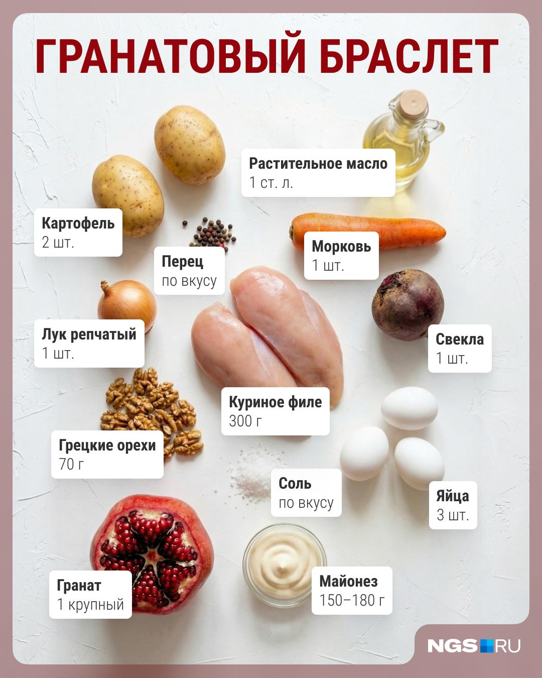 Набор продуктов, необходимых для приготовления салата «Гранатовый браслет».