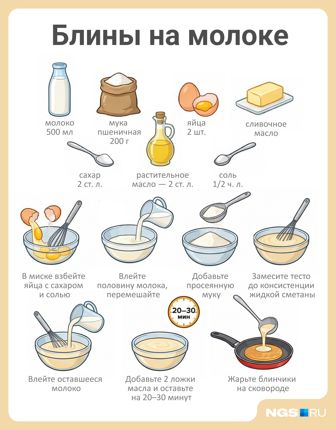 Ингредиенты для 12–15 блинов:
