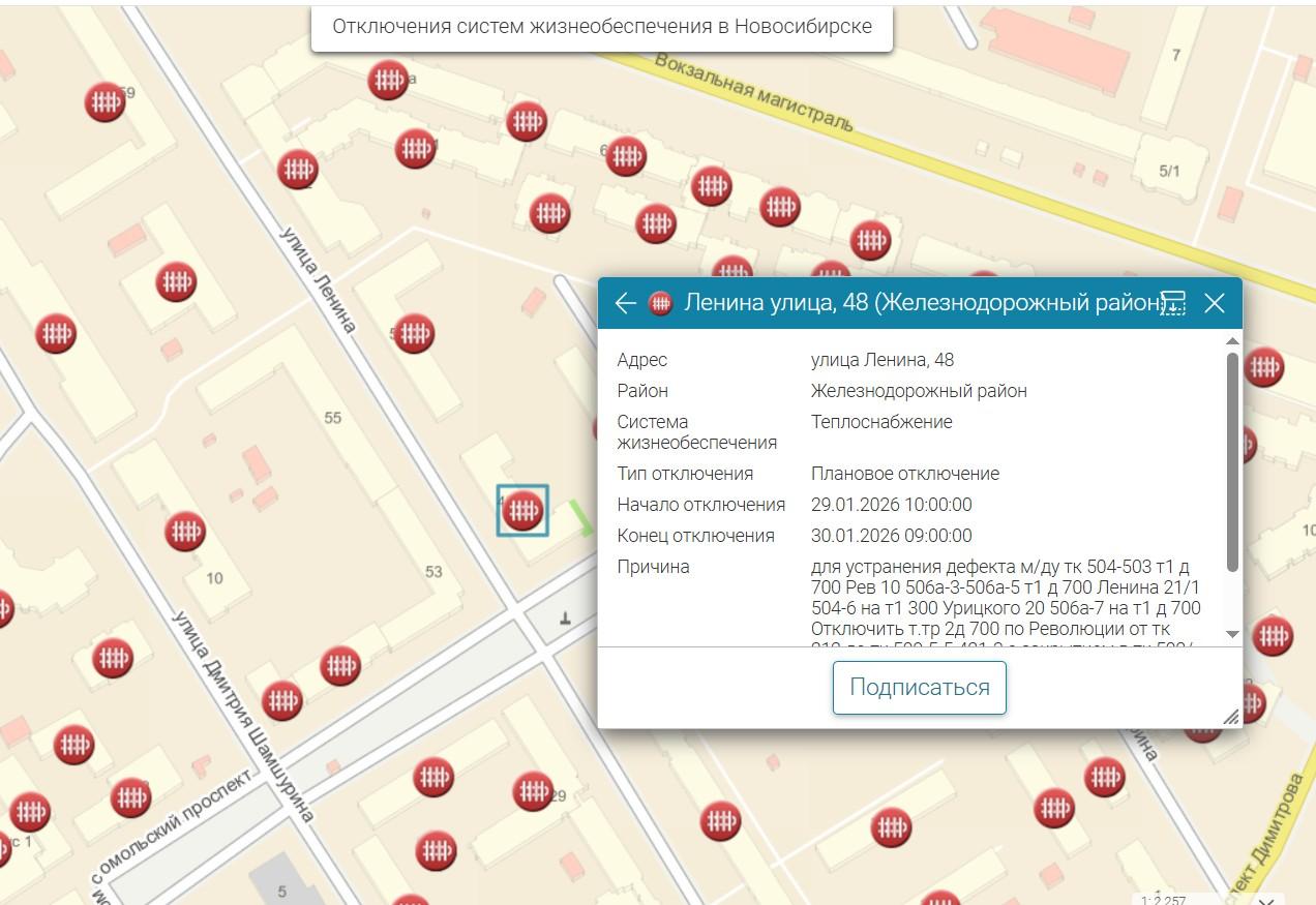 29 января в Железнодорожном районе Новосибирска было отключено теплоснабжение в более чем 80 многоквартирных домах.