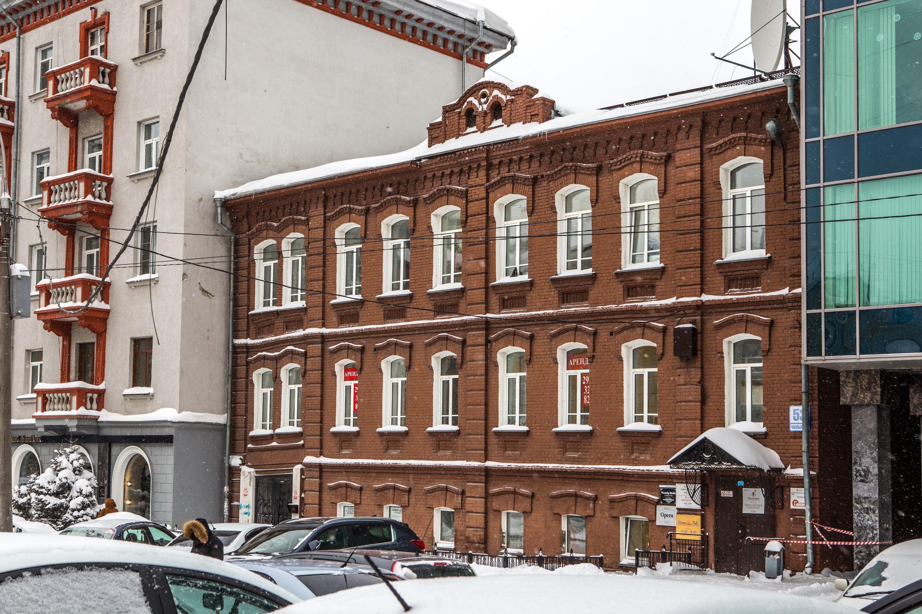 На продажу выставлен трехэтажный кирпичный особняк, который тесно окружен более поздними постройками. Здание, признанное памятником регионального значения, в начале XX века принадлежало купчихе Евлампии Дудихиной — его проект городская управа утвердила в 1911 году.