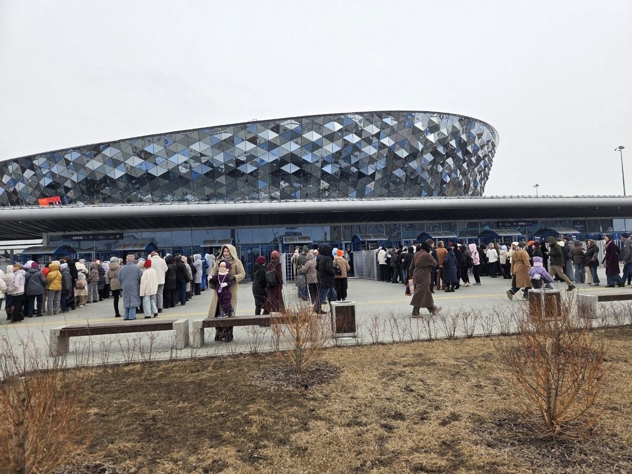 Зрители подходили к зданию с разных сторон. Значительное скопление людей наблюдалось на подходах к арене, в вестибюле метро, а также на прилегающей парковке, которая оказалась полностью занятой.