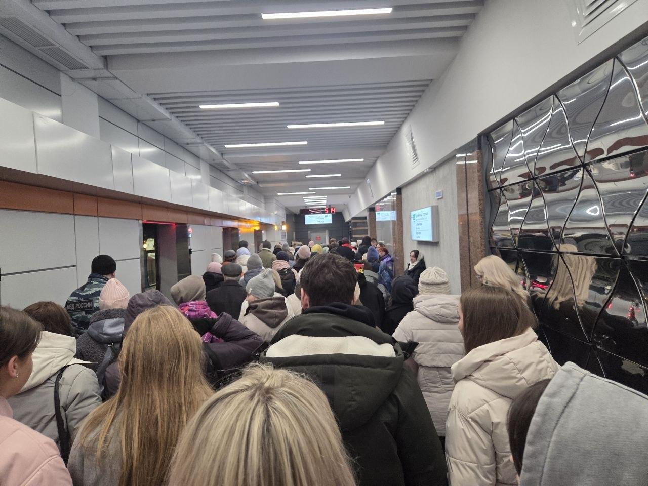 Очереди и скопления людей образовались у входа в метро.