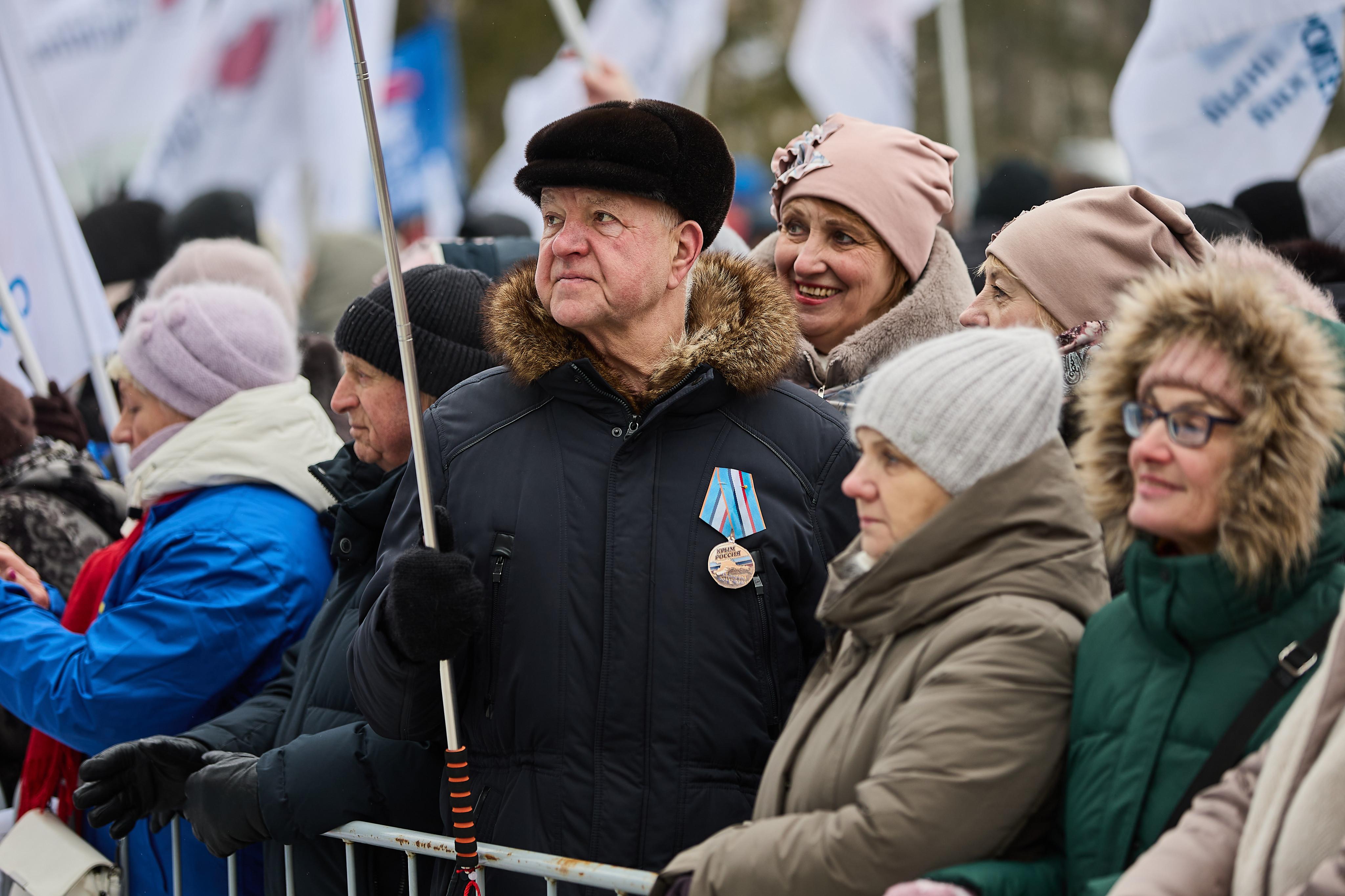 В Центральном парке Новосибирска 18 марта прошло мероприятие, посвященное 12-й годовщине воссоединения Крыма с Россией. На празднике выступили творческие коллективы, а мэр Максим Кудрявцев вручил медали «Отец солдата».