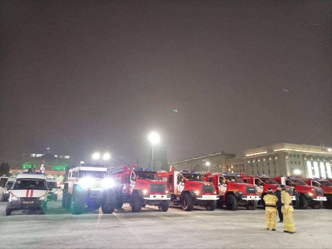 Пожарные перекрыли парковку на площади Ленина в Новосибирске