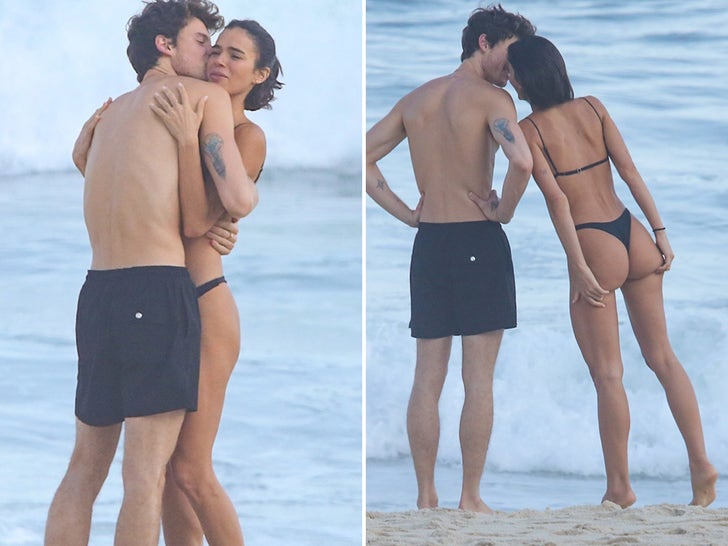 Шон Мендес и Бруна Маркезине не скрывают страсти на пляже