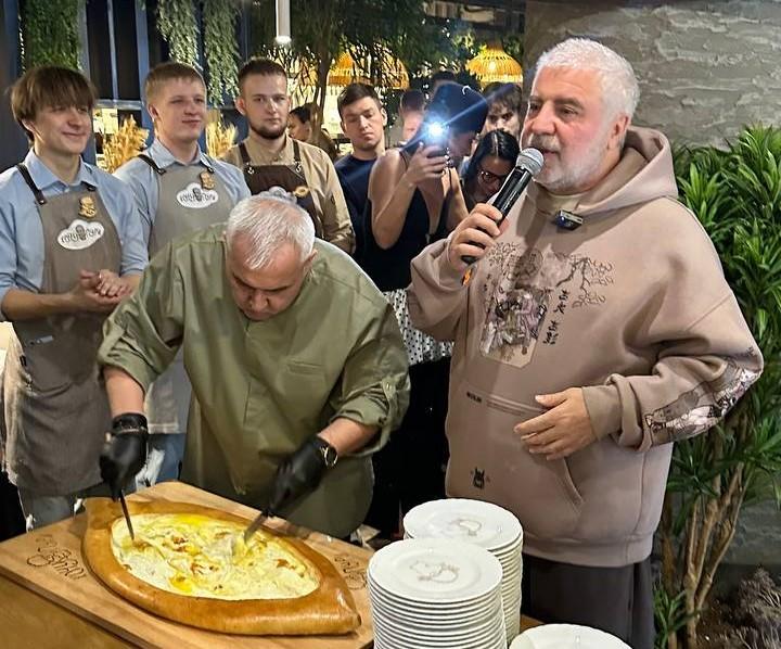 Сосо Павлиашвили в грузинском ресторане «Хочу Пури» в Новосибирске.