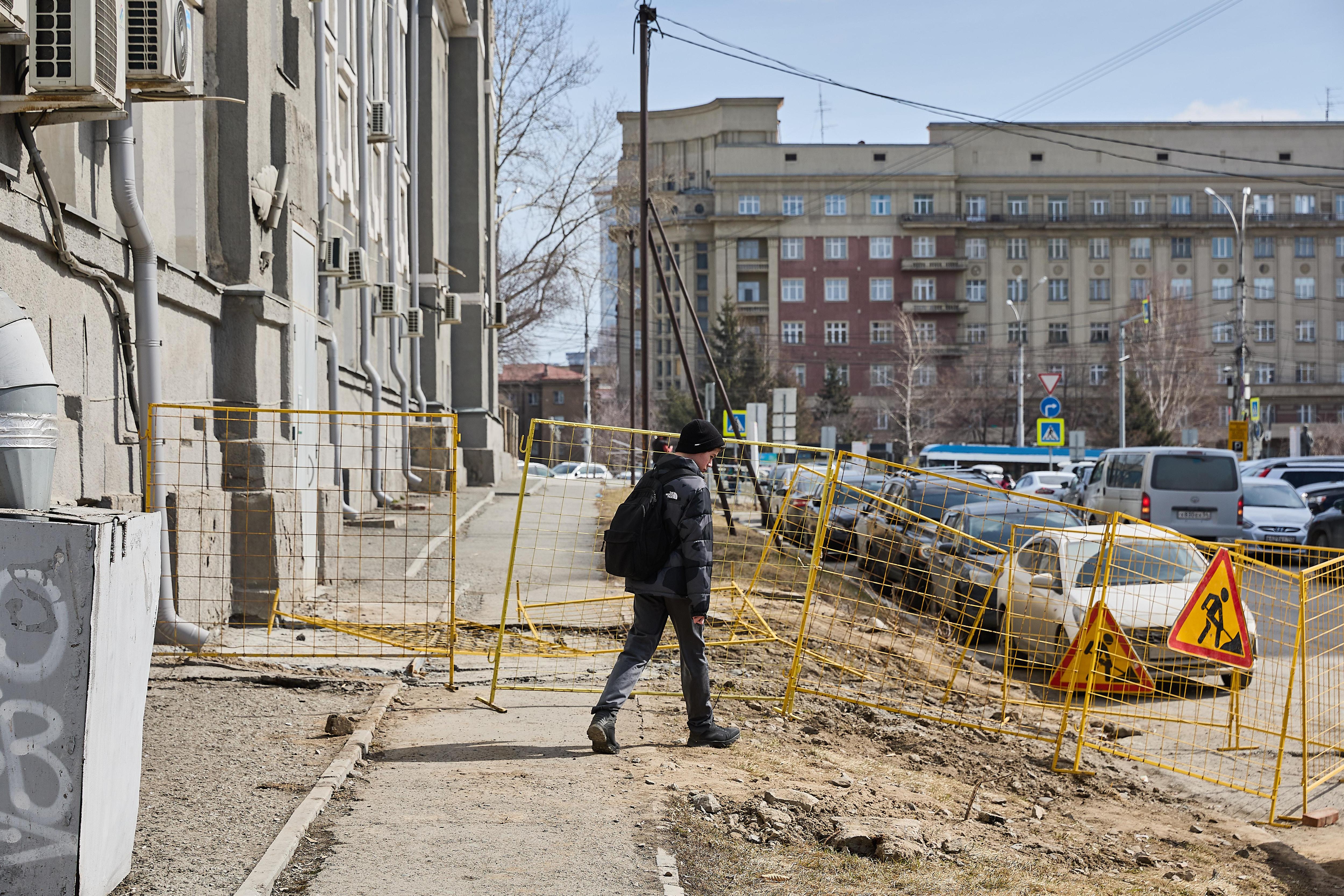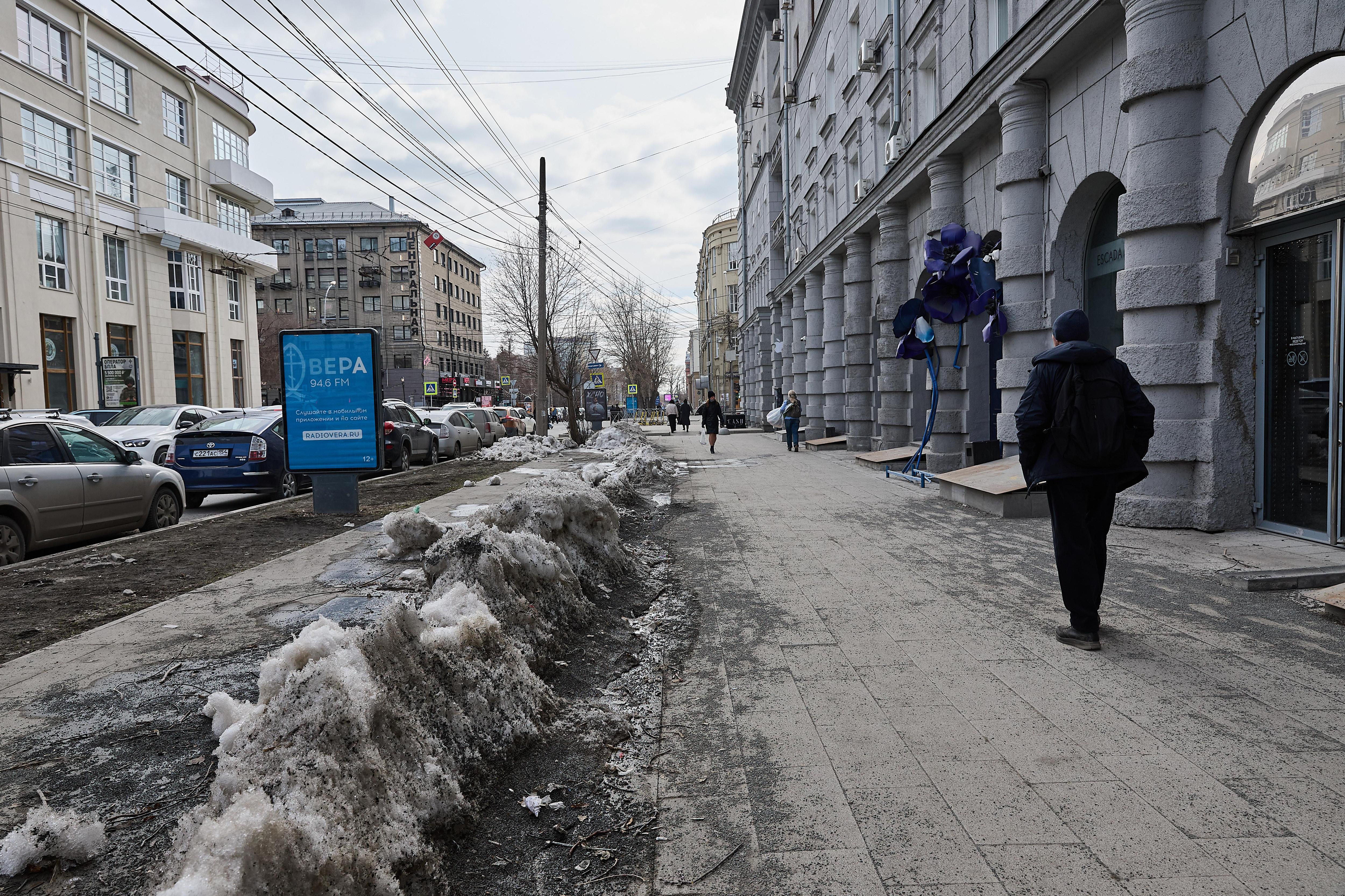 После зимних месяцев центральная часть Новосибирска пришла в упадок. Повреждения затронули пешеходные зоны, дорожное покрытие и ступени. На некоторых улицах до сих пор можно увидеть сугробы, смешанные с гранитной крошкой, которая рассыпана по тротуарам. Журналист-фотограф Александр Ощепков запечатлел текущее состояние городских пространств.