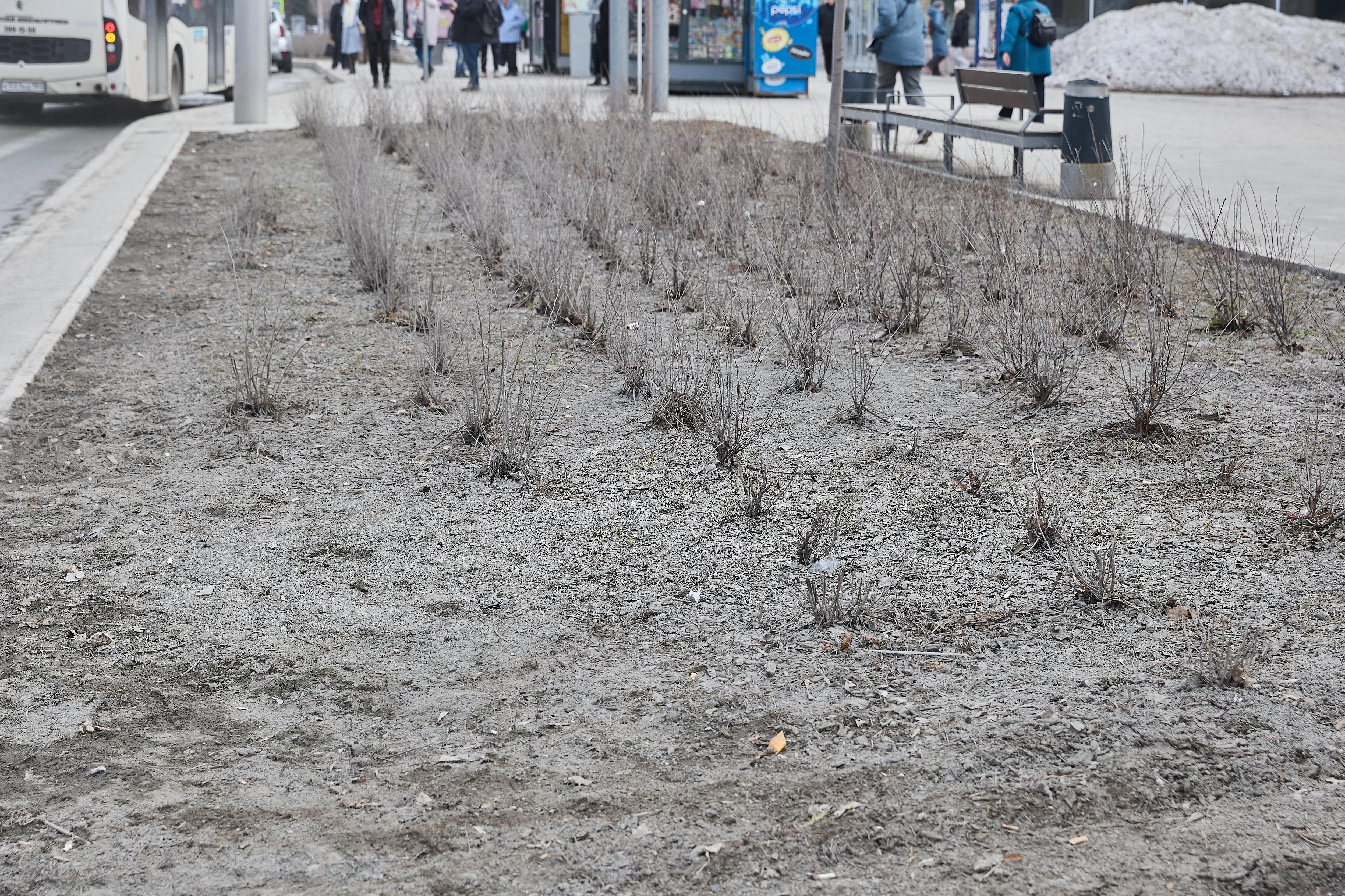 Оголённая почва на газонах в центре при сильном ветре поднимает в воздух облака пыли и грязи.