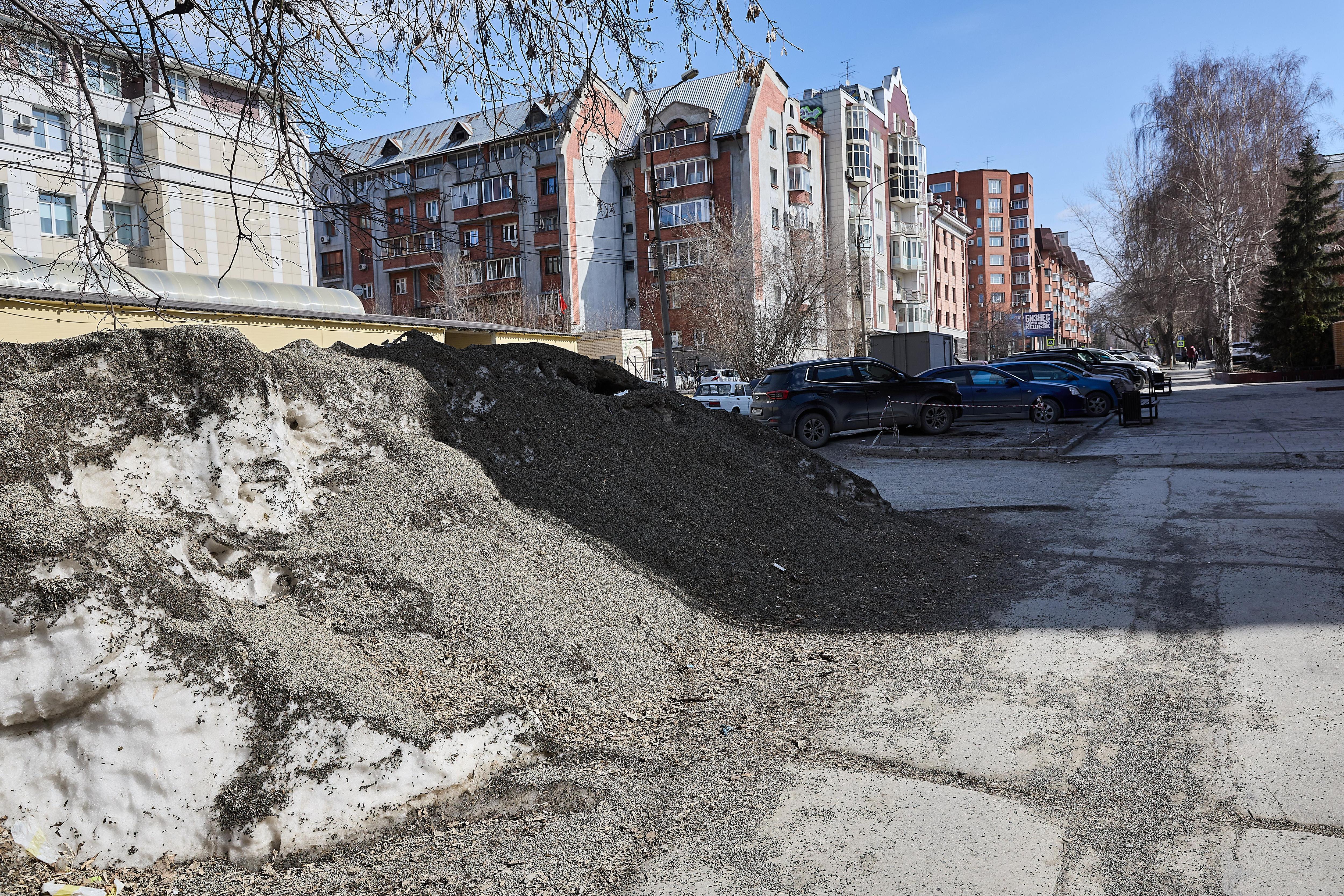 Центральные улицы Новосибирска покрыты гранитной крошкой и выбоинами после зимнего сезона.