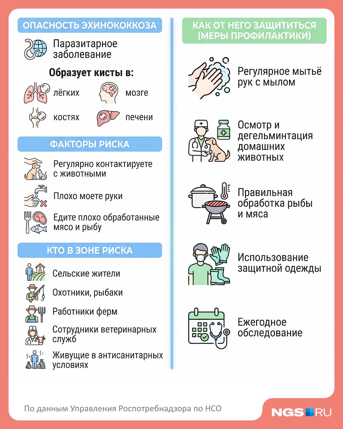 В Новосибирской области в 2024 и 2025 годах были выявлены единичные случаи эхинококкоза, о чем сообщило управление Роспотребнадзора по региону.