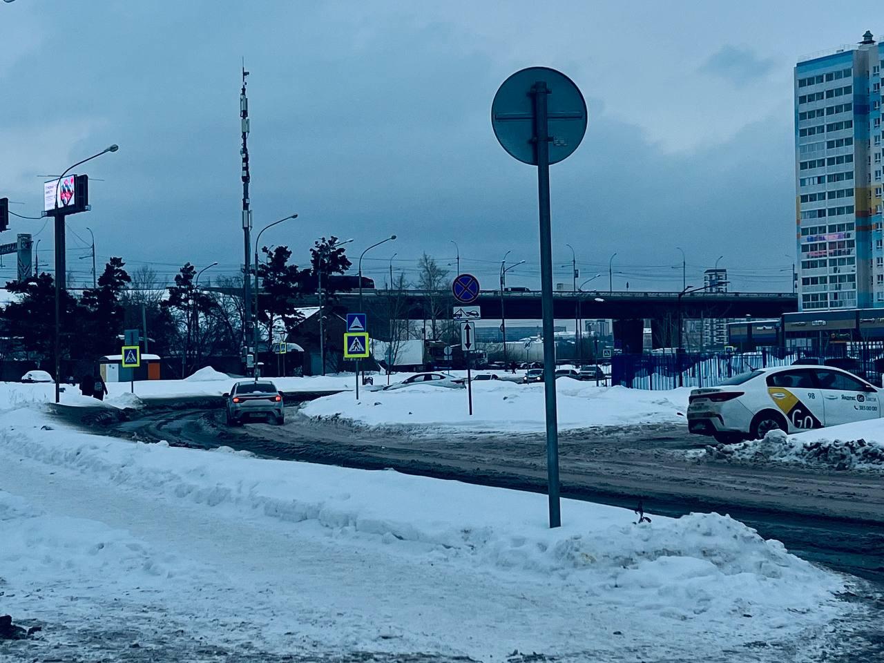 Проезжая часть всё ещё покрыта водой.