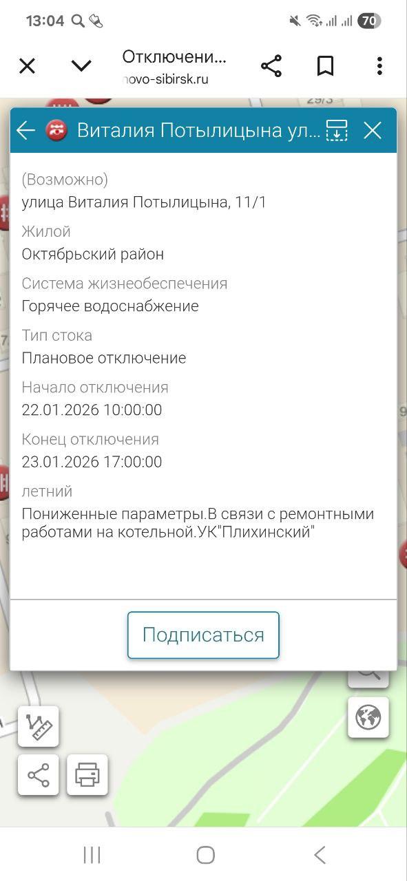 Ранее теплоснабжение Плющихинского перешло от компании «Дискус» к «Сибирской генерирующей компании». В пресс-службе СГК заявили, что в их зоне обслуживания параметры отопления и горячего водоснабжения соответствуют норме, а дома подключены к ТЭЦ-5.
