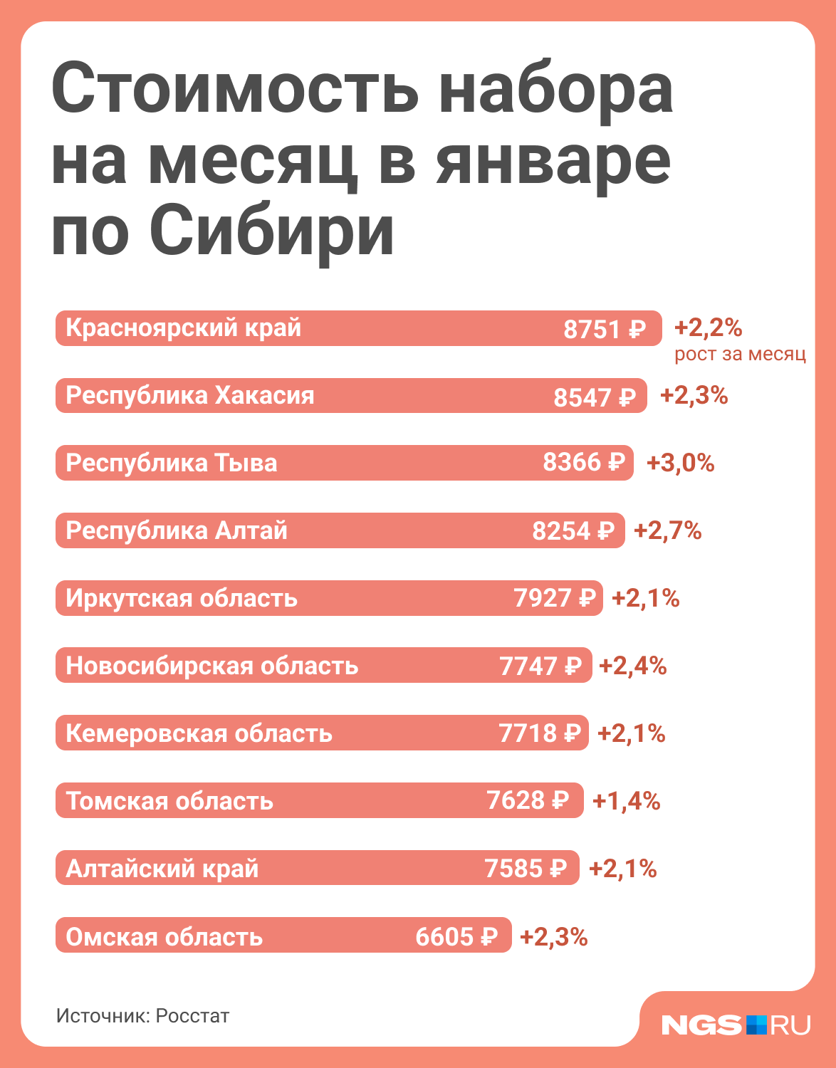 Минимальный набор продуктов в Новосибирской области подорожал на 2,4%