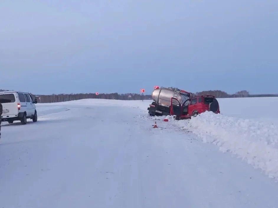 «По предварительной информации, водитель „Тойоты“, женщина 1982 года рождения, не имея права управления транспортным средством, двигалась по автодороге Сузун — Битки — Преображенка со стороны села Болтово в сторону рабочего поселка Сузун, на 29-м километре, выехав на полосу встречного движения, совершила столкновение со встречным автомобилем КАМАЗ (молоковоз)», — проинформировала Госавтоинспекция региона.