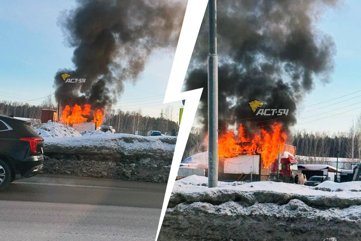 Вечером 15 февраля в Новосибирске загорелось одноэтажное здание на улице Петухова. Огонь охватил пункт обмена газовых баллонов.