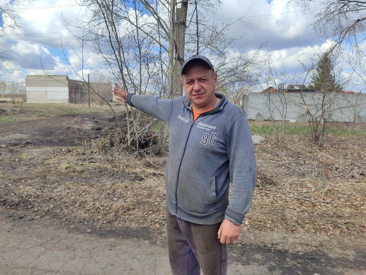 «Оттуда пал пошел, быстро из-за ветра поднялся. Потом новые очаги возгорания появились ближе к моему забору», — показал Денис. Для борьбы с огнём он использовал два своих трактора и лопаты, чтобы вспахать землю и не дать пламени распространиться дальше.