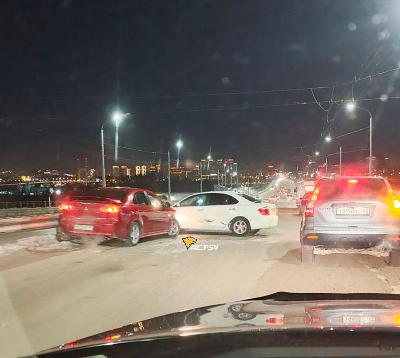 Фотографию аварии опубликовал телеграм-канал ACT-54 Black. На снимке видно, что автомобили перекрыли две полосы движения в сторону правого берега.