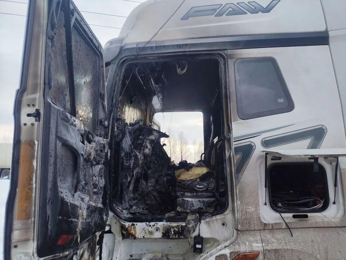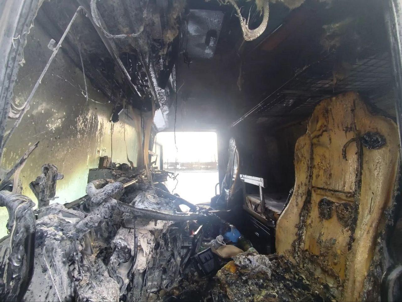 Возгорание ликвидировали в кратчайшие сроки, пострадавших нет. От сильного огня пострадала кабина: кресло водителя и приборная панель расплавились из-за высокой температуры.