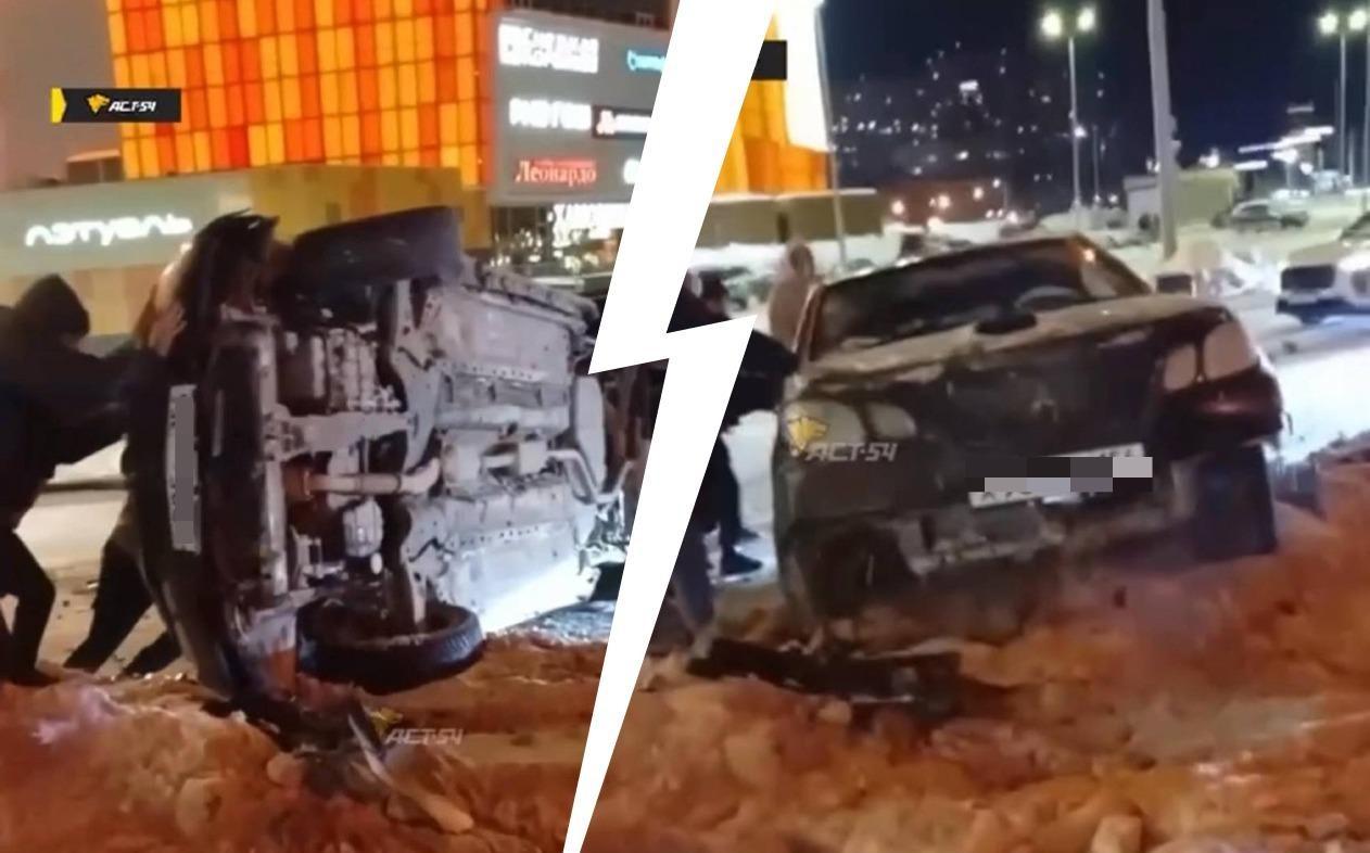 Очевидцы происшествия смогли вернуть автомобиль на колёса.