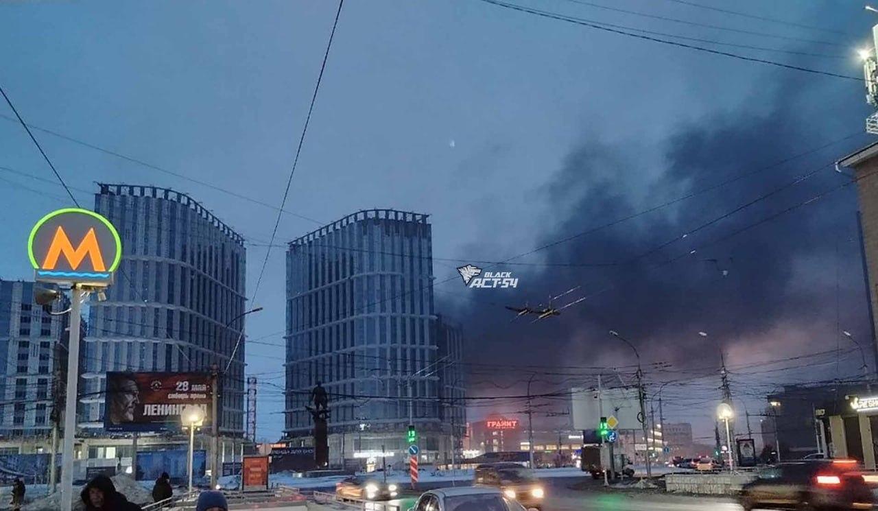 Над площадью Маркса в Новосибирске поднялся черный дым
