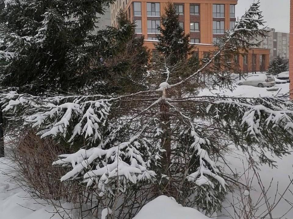 Снимки, сделанные очевидцами, демонстрируют, что у одной из елей отсутствует верхняя часть. На том же фото видно, что рядом стоящее дерево не пострадало. Точное количество поврежденных саженцев пока не уточняется.