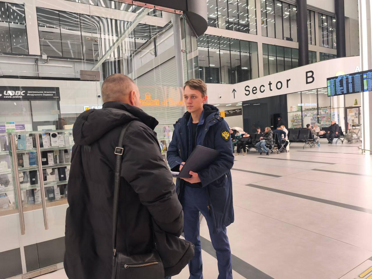 Сотрудники ведомства организовали в аэропорту мобильную приёмную. Вылет рейса перенесли на следующий день.