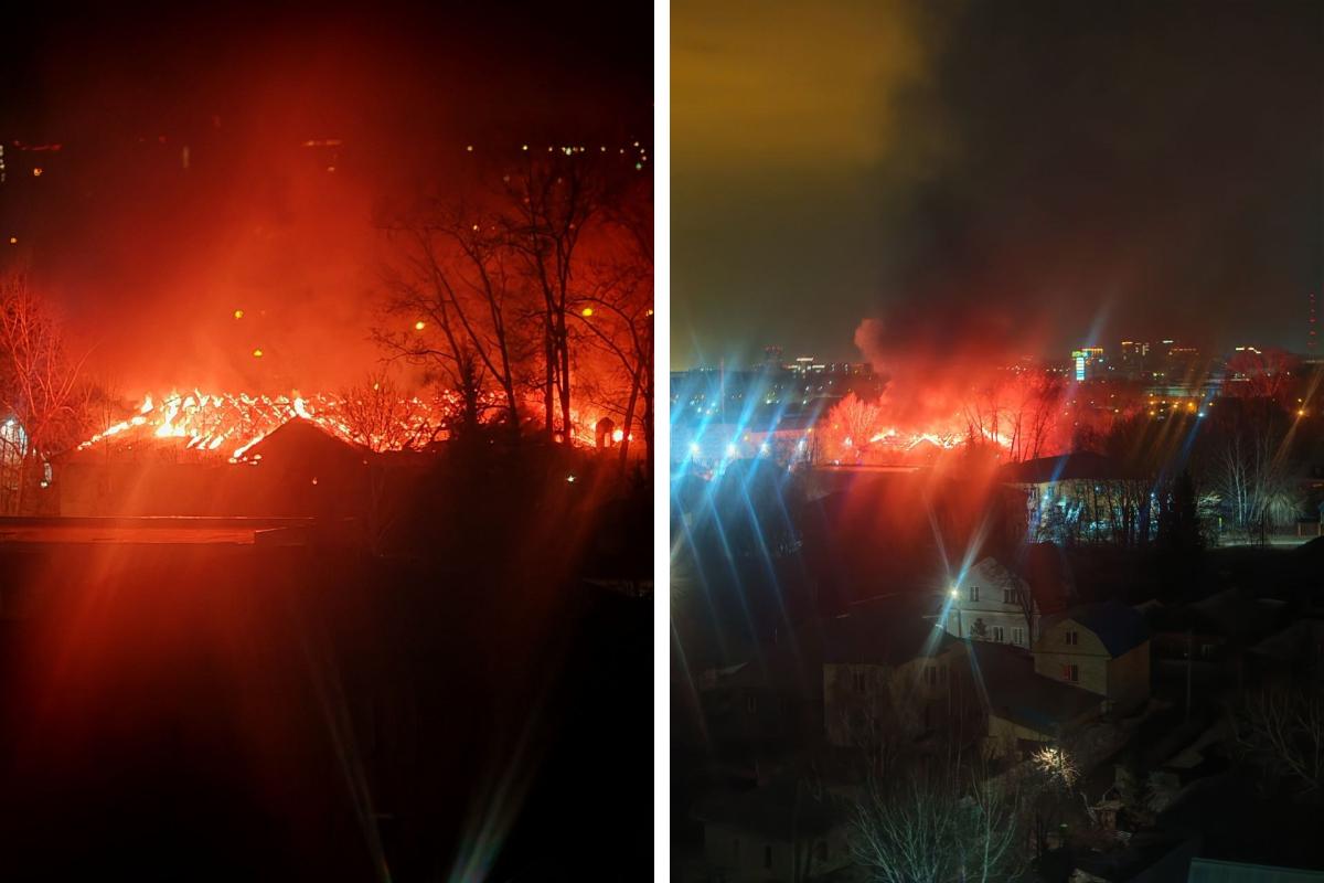 Крупный пожар вспыхнул в Новосибирске в ночь на 19 апреля около 3:30. Возгорание произошло в Кировском районе на улице Сержанта Коротаева, 1, где огнём было полностью охвачено всё здание.