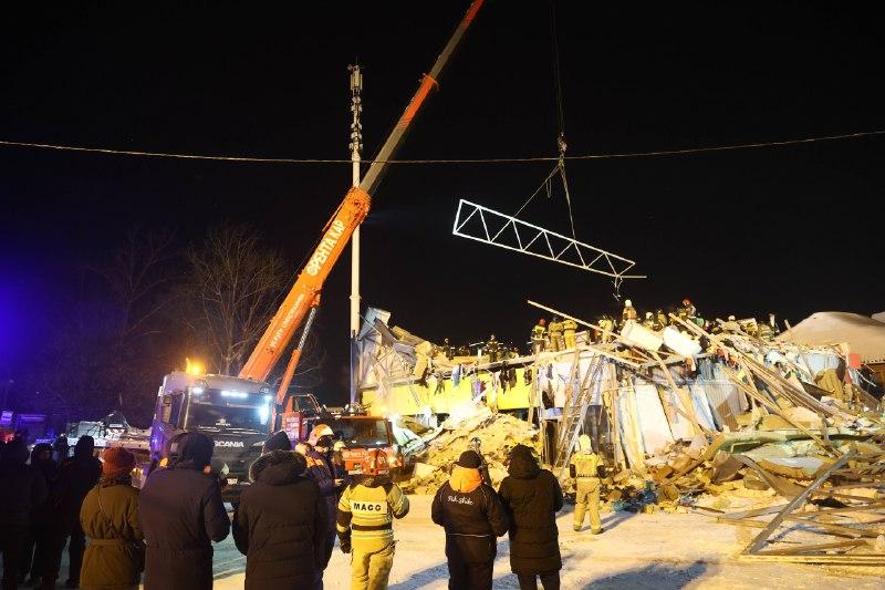 В ходе поисковых операций спасатели вручную расчищали снежные завалы лопатами, разрезали металлические элементы бензорезами и разбирали обломки. Для обнаружения пострадавших периодически объявлялись минуты тишины с отключением двигателей техники.