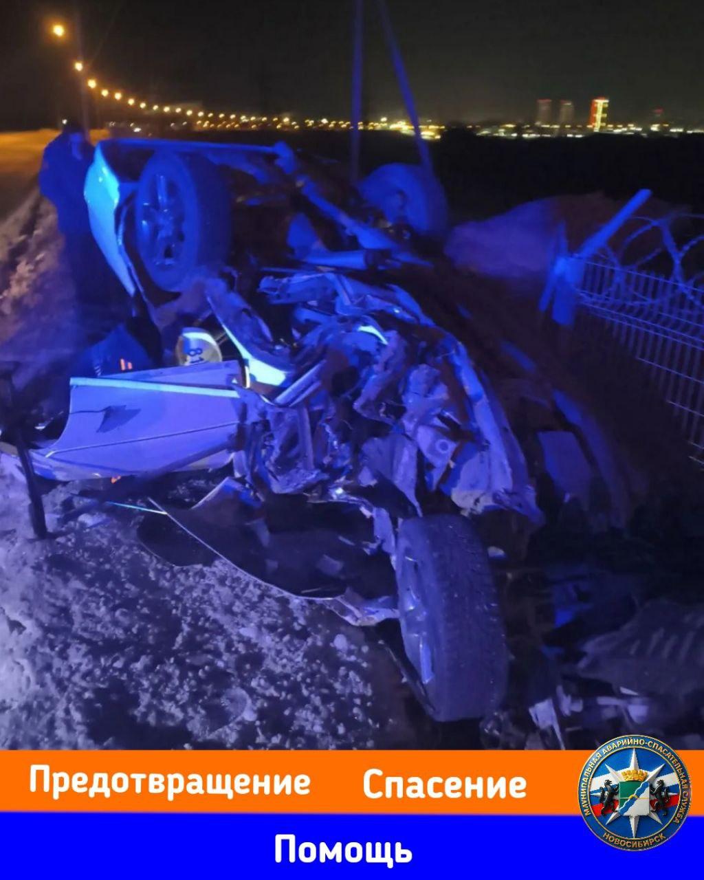 На дамбе ГЭС в Новосибирске произошло смертельное дорожно-транспортное происшествие, в результате которого погиб 39-летний водитель автомобиля Toyota Cresta. Фотографии с места аварии опубликовала МКУ «Служба аварийно-спасательных работ».