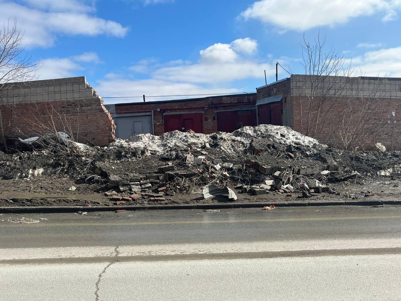 Восстанавливать стену не планируется, заявили в администрации Калининского района. Работы по уборке строительного мусора намечены на май 2026 года.