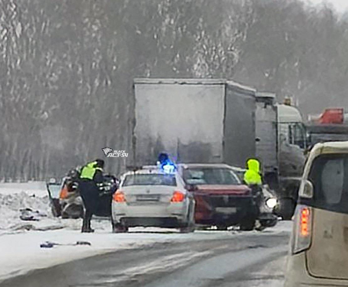 В сообщении телеграм-канала, где упоминался 112-й километр трассы в сторону Болотного, говорилось: «Лобовое ДТП с участием легкового автомобиля „Форд“ и фуры „Ситрак“ произошло на трассе Р-255… Сотрудники ГАИ организовали реверсивное движение». Автор сообщения также указывал на наличие гололёда.
