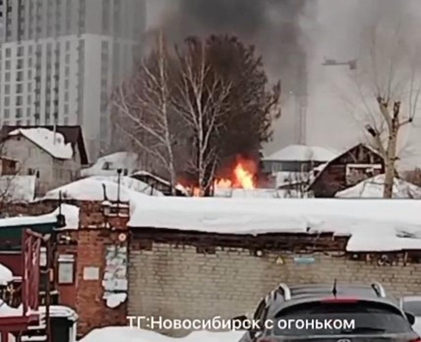 «Что-то полыхает за Ельцовкой. Похоже по размеру, что дом, а может, сарай», — сообщил автор видео.
