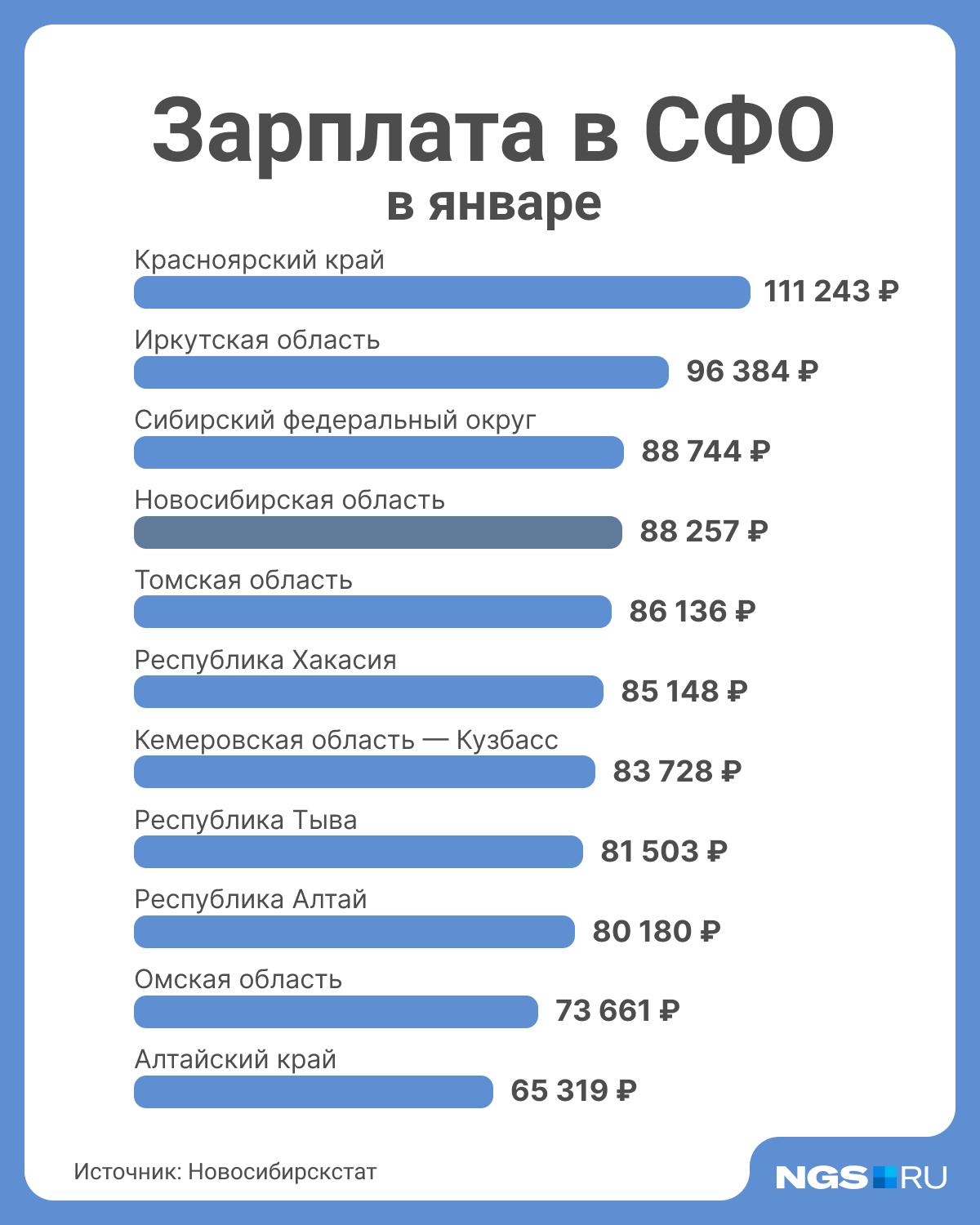 Новосибирская область занимает третью позицию по уровню средней зарплаты среди субъектов Сибири.