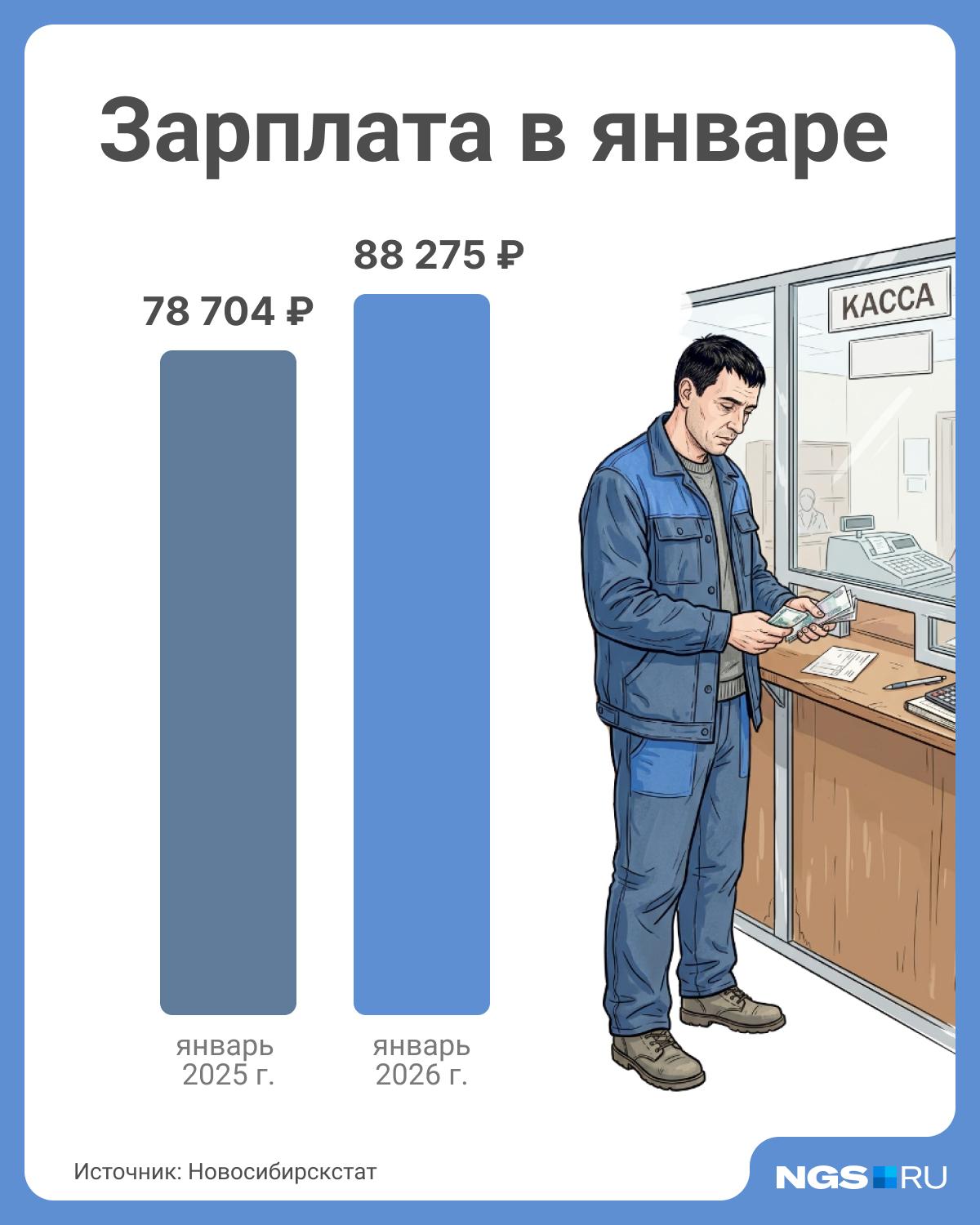 Среднемесячная номинальная начисленная заработная плата в Новосибирской области в январе 2026 года достигла 88 257 рублей, согласно информации Новосибирскстата.