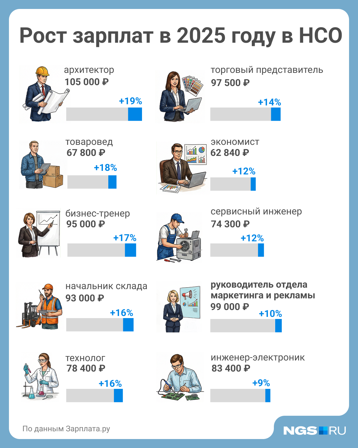 Согласно информации сервиса «Зарплата.ру», наибольший рост оплаты труда в Новосибирской области за 2025 год зафиксирован у архитекторов. Их среднемесячный доход увеличился на 19% и достиг 105 тысяч рублей.